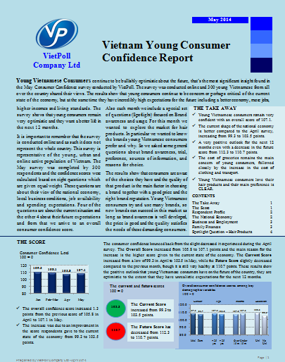 The purpose of this Young Consumer Confidence Survey is to provide information about the current and future path of household spending. More specifically we aim at providing information that relates to the younger, urban, online savvy population of Vietnam.